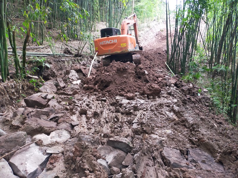 本路于10月12日至16日二次进场清理塌方和修补损坏路段。进入10份以来,我们这里天气还是很不好,基本每天都会下一阵雨,有时会下一整天,刚挖好的毛坯路面只要下了雨(而且这个雨季持续时间段很长),根本无法通行汽车,所以一直无法举行竣工仪式。(图片为损坏和塌方照片、清理塌方照片、近日走访照片)。