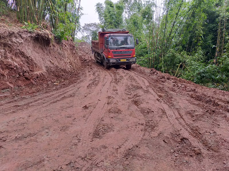 本路于10月12日至16日二次进场清理塌方和修补损坏路段。进入10份以来,这里天气还是很不好,基本每天都会下一阵雨,有时会下一整天,刚挖好的毛坯路面只要下了雨(而且这个雨季持续时间段很长),根本无法通行汽车,所以一直无法举行竣工仪式。