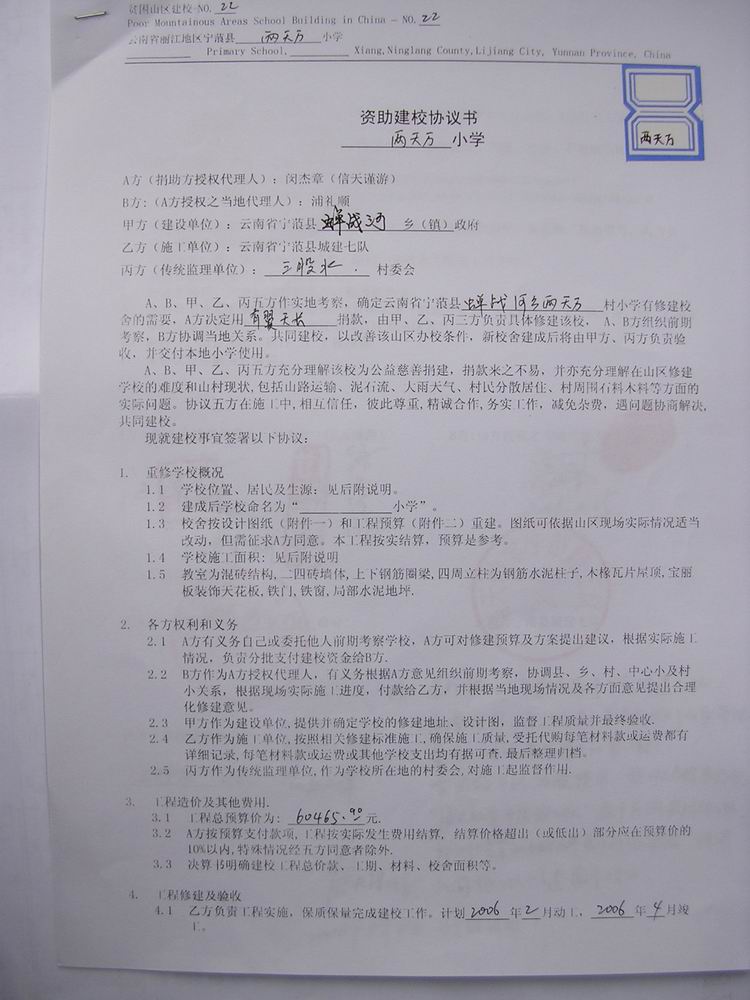 二、《资助建校协议书》及附件《图纸》和《工程预算单 》