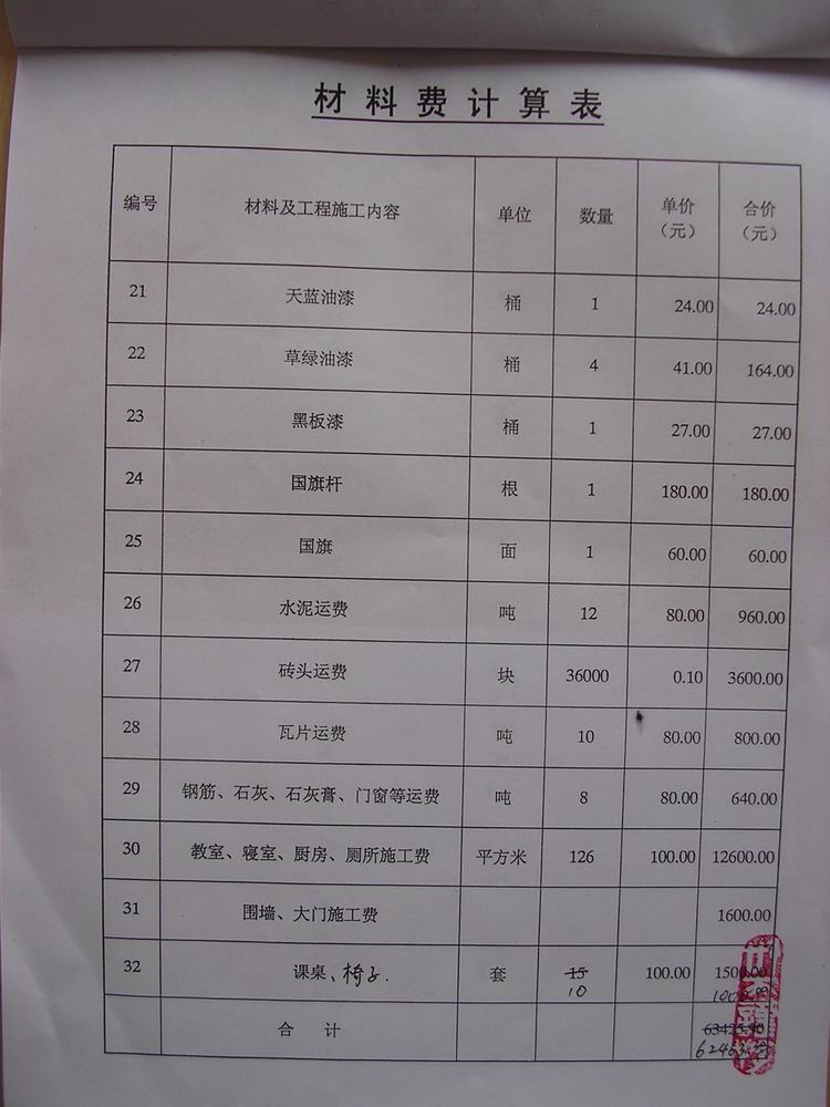 30)                教室、寝室、厨房、厕所修建施工費        121平方*100元/平方        12100.00