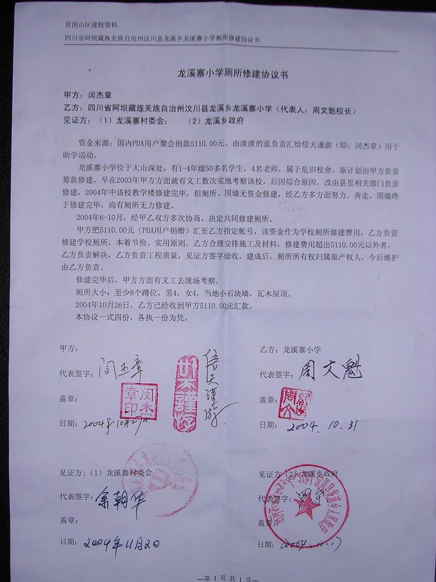 标题: 四川汶川龙溪寨小学厕所修建报告(第四届PDA用家聚会捐款)
