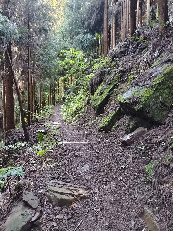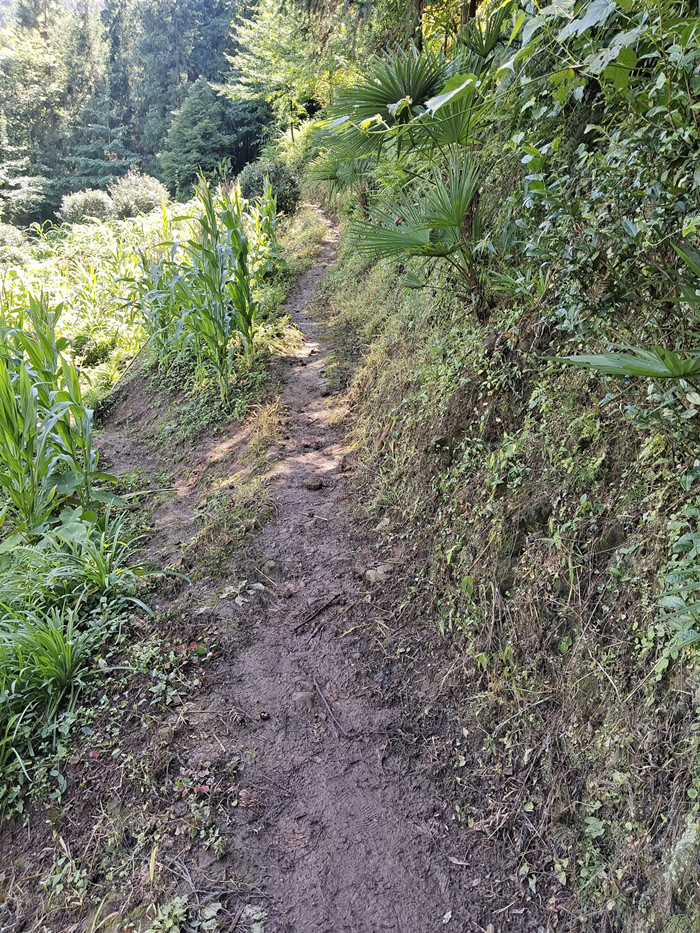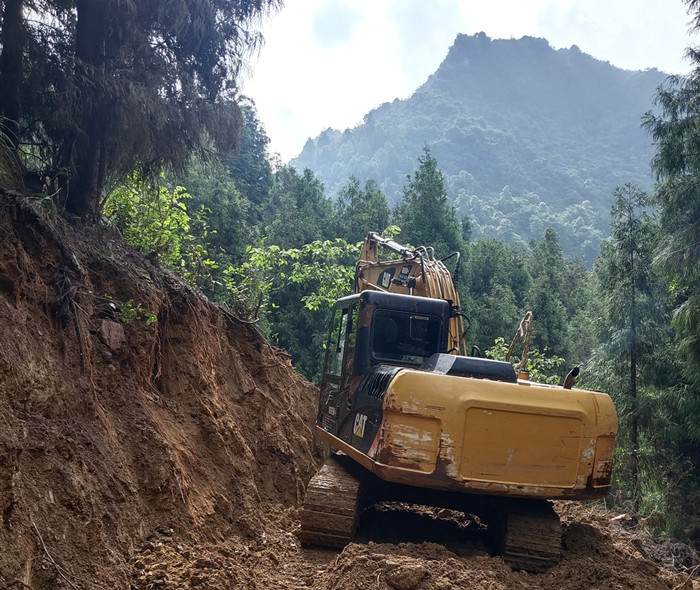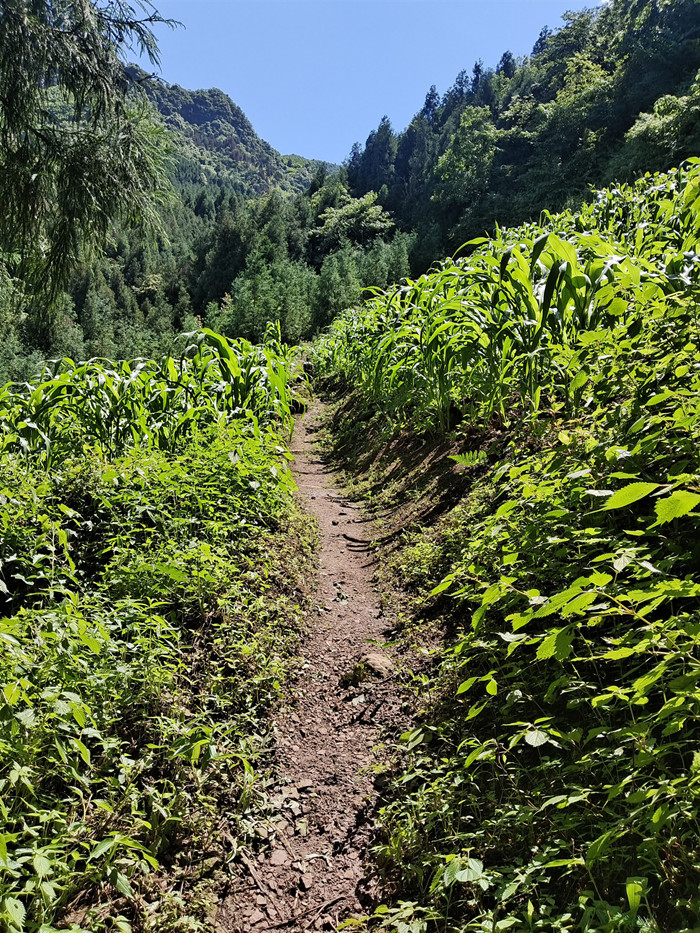 勘察路线,计划把这里的羊肠小道扩宽修建成能跑四轮车的乡间土质公路。