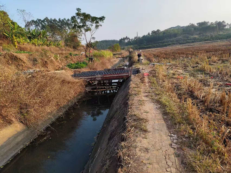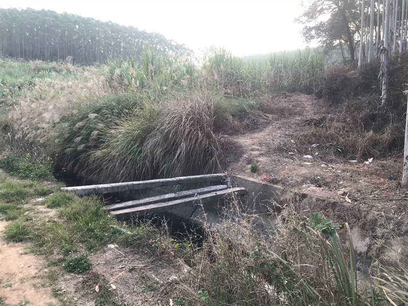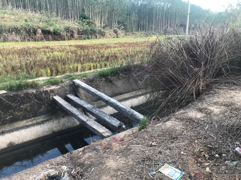 石井桥、上怀塘桥位于广西贵港市港南区木格镇周樟村樟村屯中的一条辅路河渠上,该屯以汉族为主,有农户218户,人口大约为900多口,经济收入主要来源是农作物收益。村民耕作生产需经此桥,现村民自己用(1)三根水泥杆架、(2)用一根水泥杆架在水渠上通行,雨季时节水流较大,严重影响了群众的正常生产生活,存在着很大的安全隐患,所有村民都急盼修建一座桥梁。