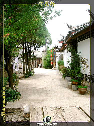 面对古城曲里拐弯的巷陌河道,定位问题十分要紧,标准却甚为随意。用著名定位无名,用熟悉定位陌生,大概最为有效快捷。万子桥,便是如易在短消息里给出的接头关键词。没想到我这个“老丽江”遇到了新问题,走到关门口,怎么也想不起万子桥该怎么走了!这脸可丢大发啦,不好意思问近在咫尺的丽江朋友,舍近求远打电话给远在昆明的小玉,电话一通,我的头脑也猛地“通”了,左顾而言它闲聊两句,放下电话。三步并作两步,很快找到了万子桥。去年这里还多是杂乱无序的民宅陋居,而今也花红柳绿挂起了红灯笼,开门迎客。古城的发展总超出我愚钝而缺乏经济敏感度头脑的想象,正应了那句铿镪有力的广告词:一切皆有可能!