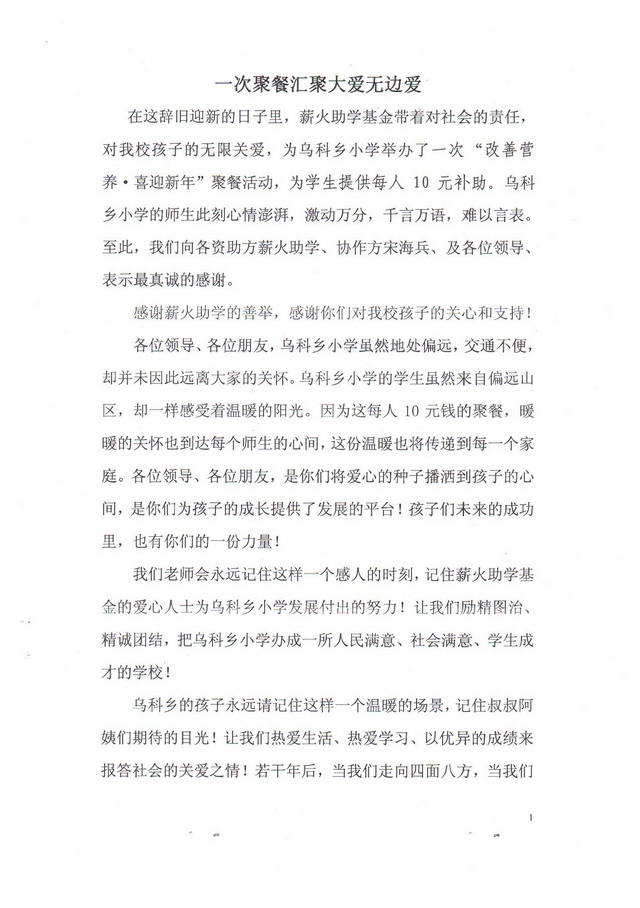 故:元旦聚餐表格以“薪火助学”为标头,希望各位网友理解。