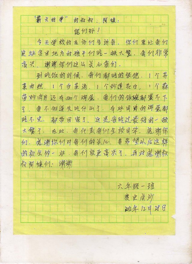 孩子们写的感谢信
