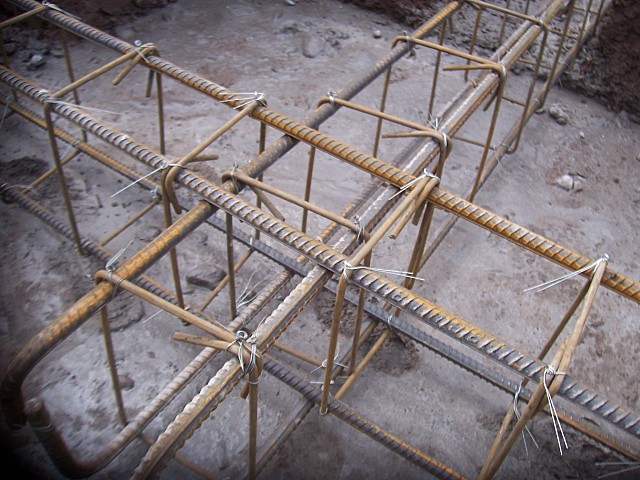 (10-12)已经在绑扎地梁钢筋了。施工很规范,钢筋规格质量等均符合要求……