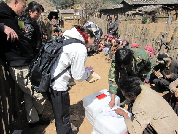 2010年4月2日,信天把13000元款汇到宁蒗,下午浦礼顺已经取出13000元,并且用心地在银行把钱换成了崭新的人民币,说给老乡们发钱,发新的好,就像过年一样。明天他们就出发送到村民手里了。
