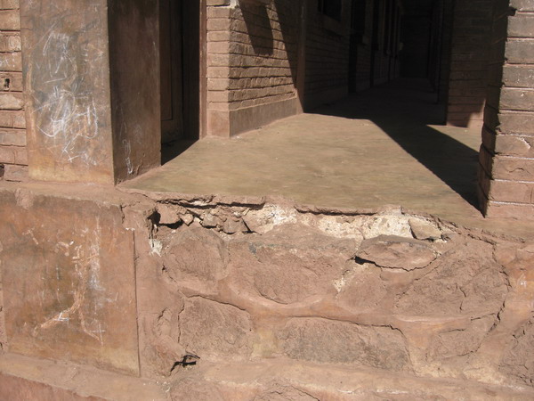 宁蒗处于滇西北高原横断山脉的地震带,随时都会地震,该校经过屡次地震破坏,现已属于危房,最严重的是教室地基下沉,地基产生裂缝。