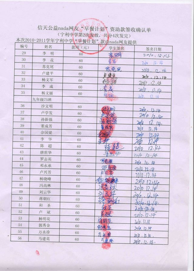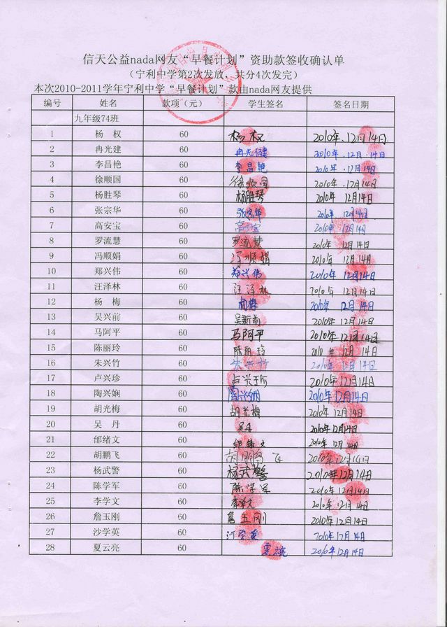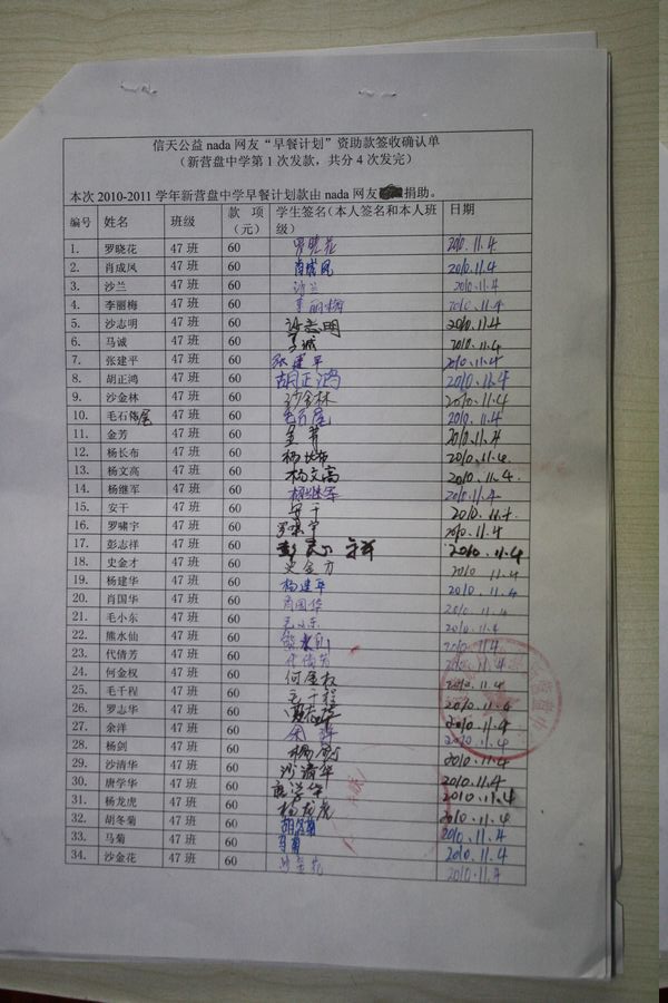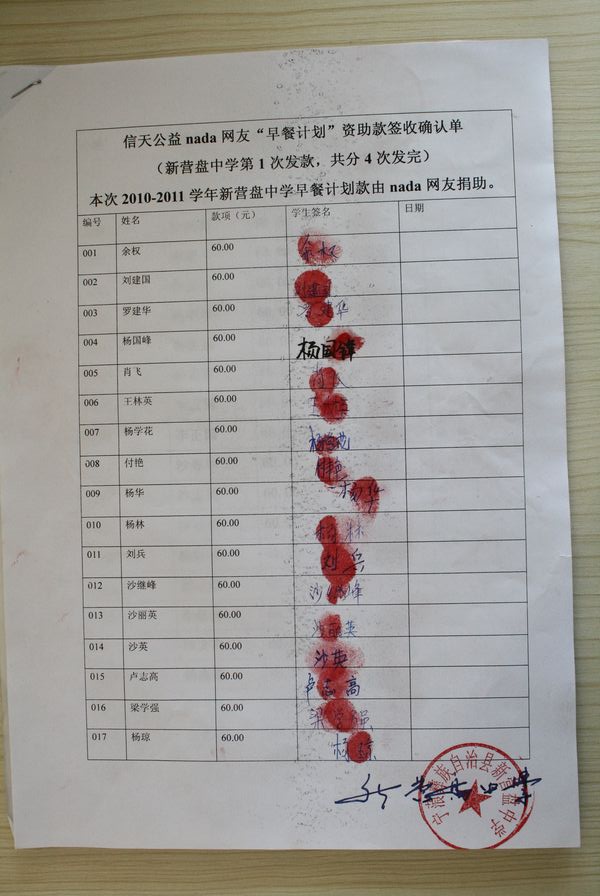 标题: 贫困学生早餐计划-宁利中学和新营盘中学(nada内部认捐)