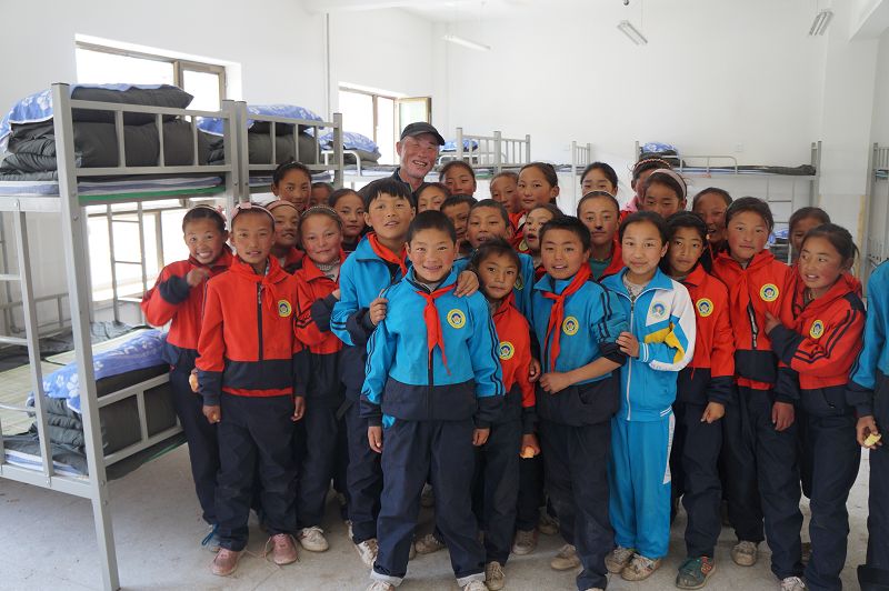 75岁的身有残疾的老厂长亲自跟车护送到学校,当地学校非常感动。
