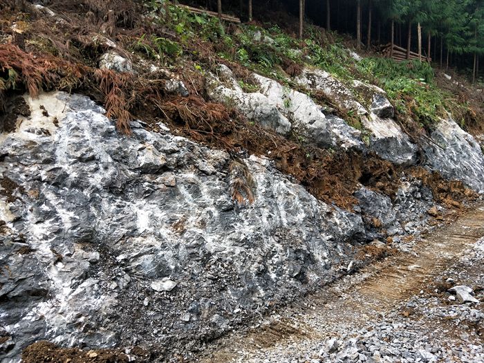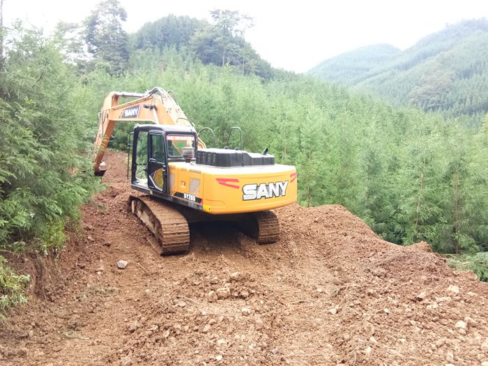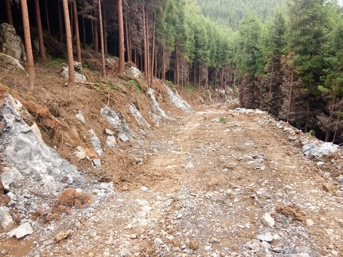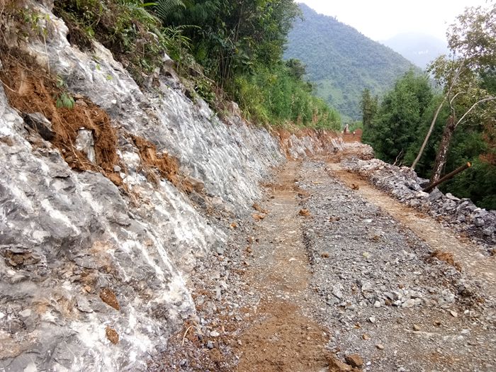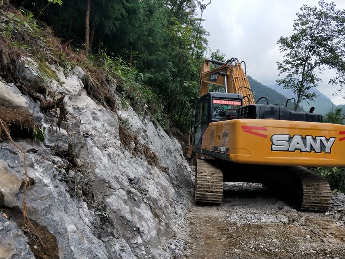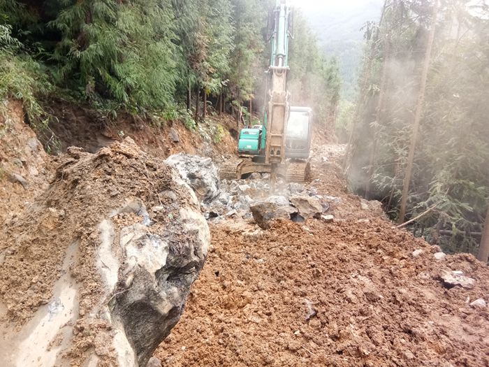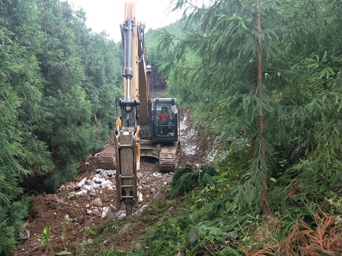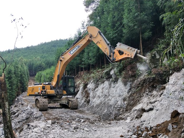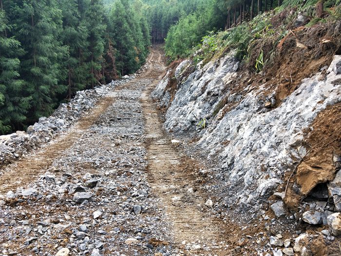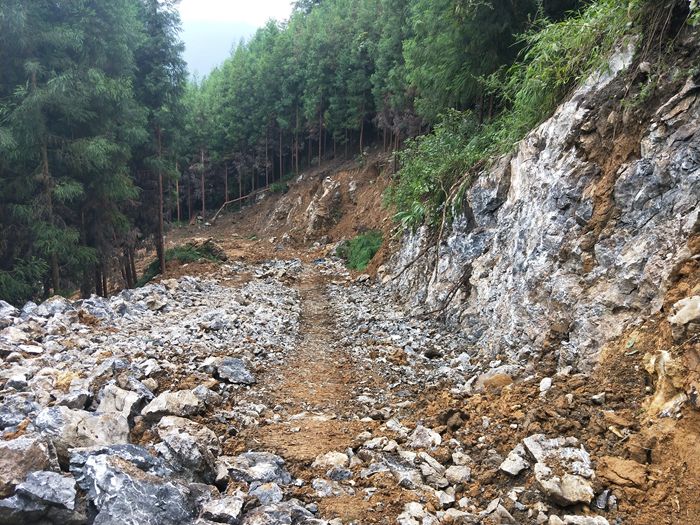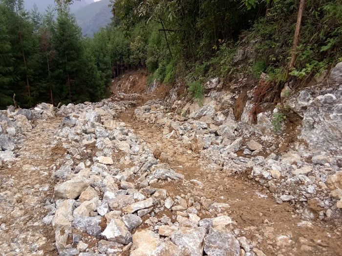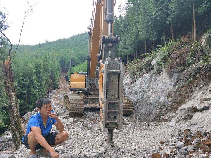 路上很多岩石,整块大岩石,需要破碎,施工难度很大。