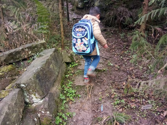 小学生上学之路,等修好了路之后,就可以坐拖拉机上学了。