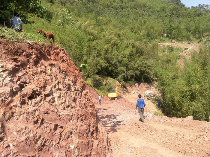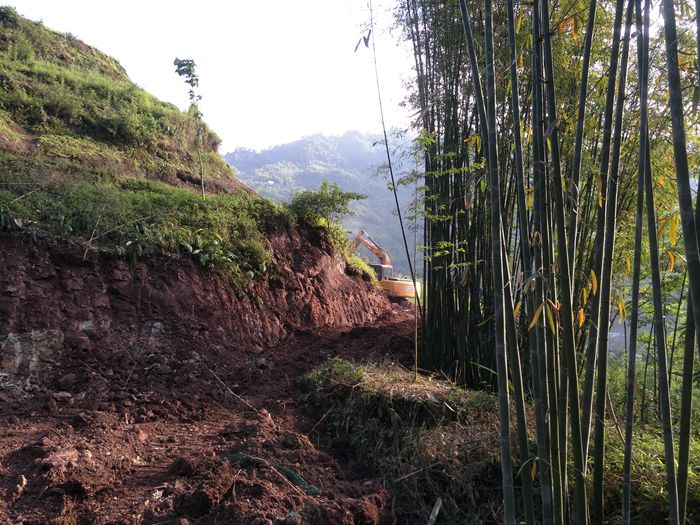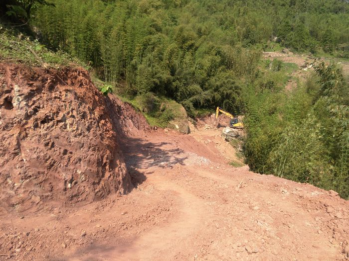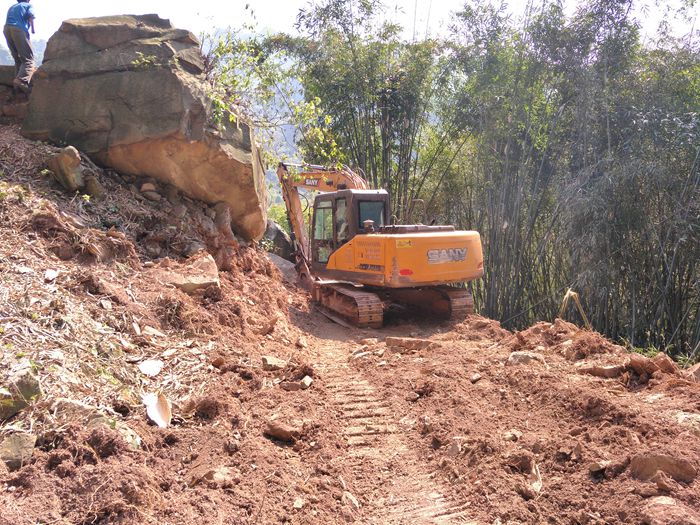 这两天在下雨,目前已经修了大约600米左右,最近就计划安装涵管,因为有两条河沟必须要通水,害怕涨水会冲毁公路,先安涵管。