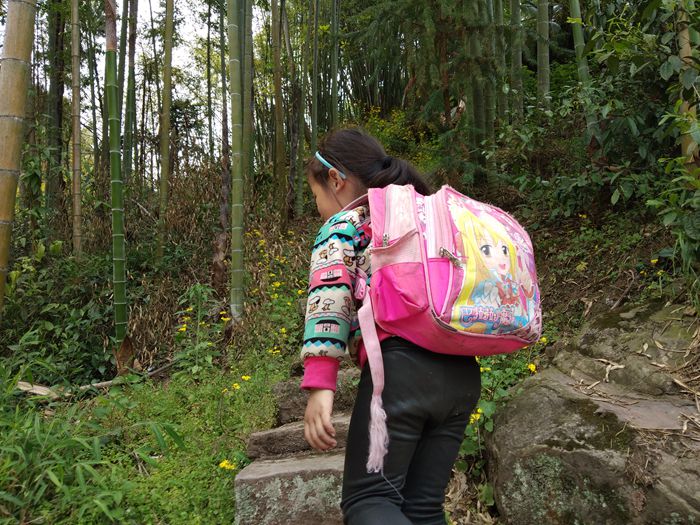 小学生上学之路,等修好了路之后,就可以坐拖拉机、面包车上学了,或者骑自行车上学了。