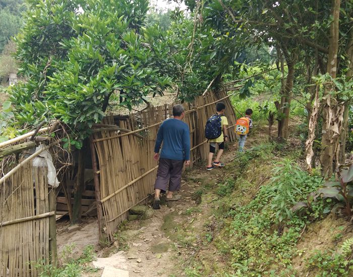 小学生上学之路,等修好了路之后,就可以坐拖拉机、面包车上学了,或者骑自行车上学了。