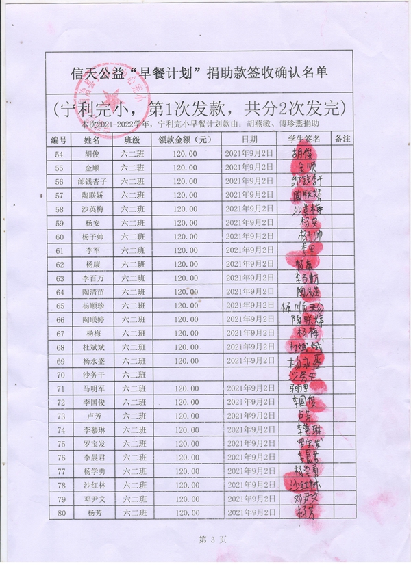 信天公益“早餐计划”签收单3(宁利完小).jpg