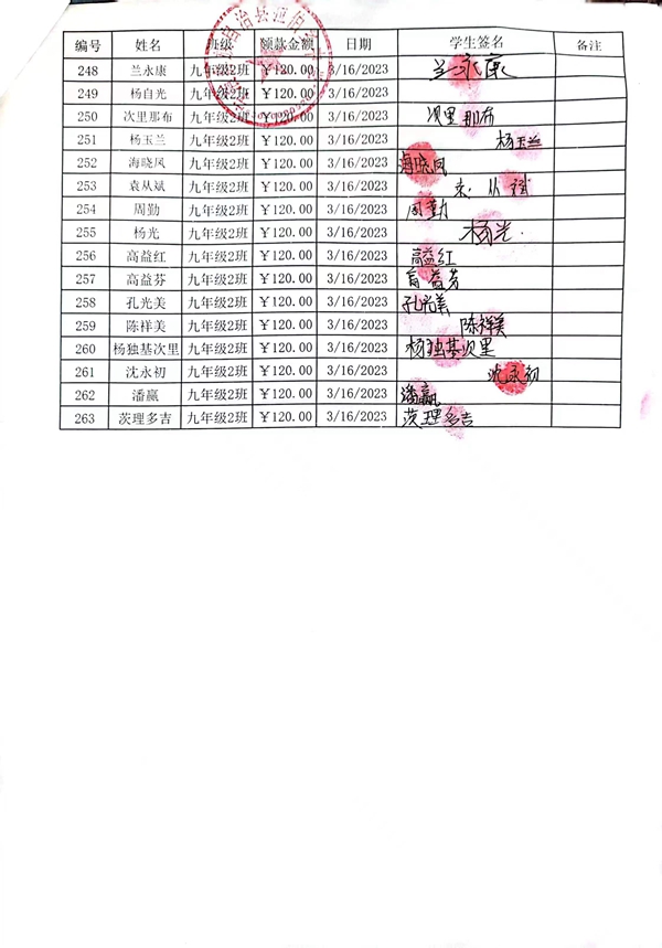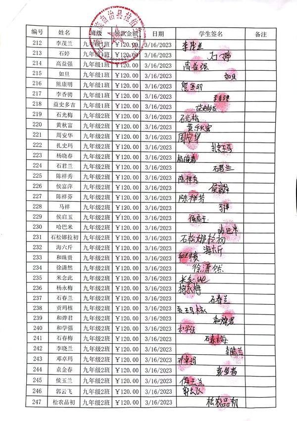 拉伯中学,2022-2023年早餐计划第二次发款签收单