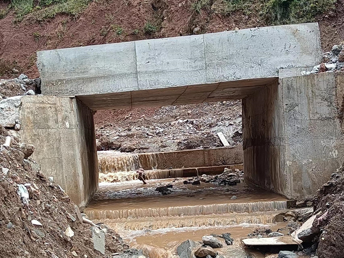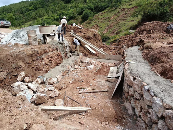 由于此路段有泥石流,故:等到雨季结束后,需要再做护堤(又称挡土墙)。
