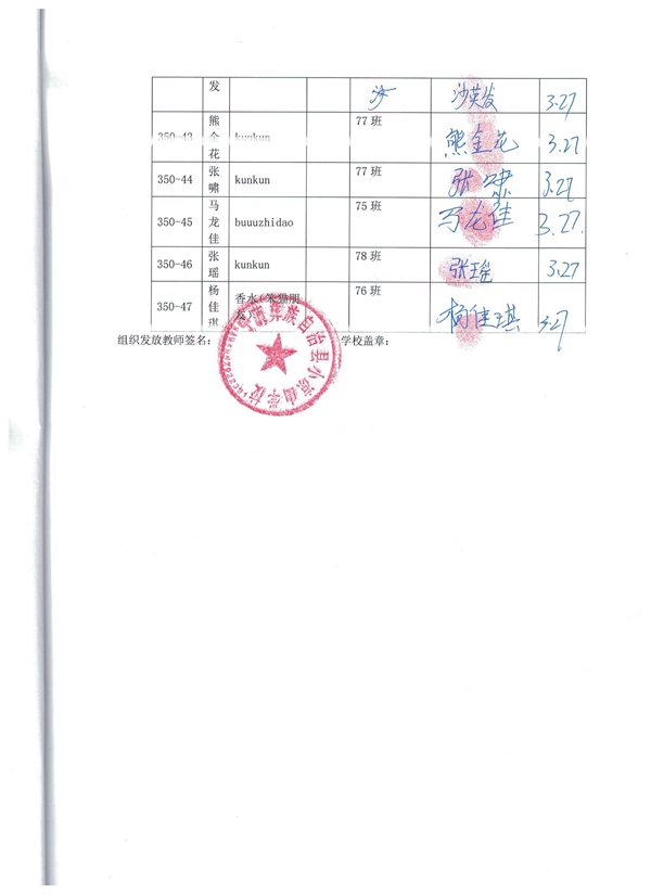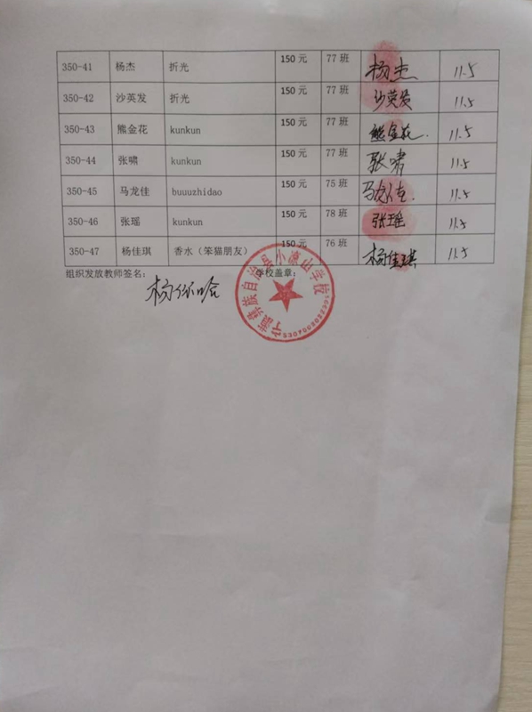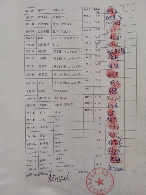 第350批小凉山学校(2023年3月到2023年7月)受助学生签收单