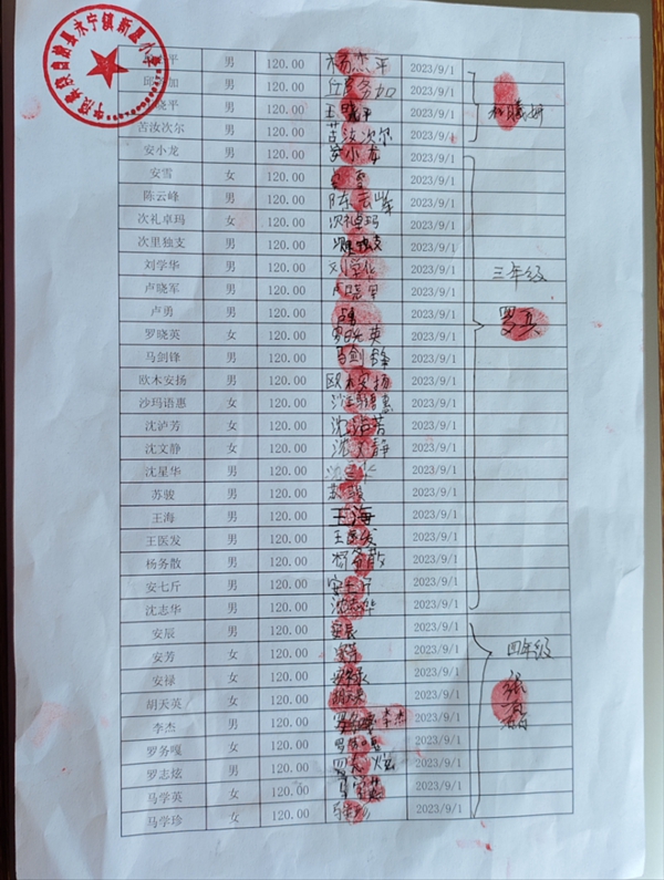宁利中心完小,2023-2024年上学期早餐计划第一次发款签收单