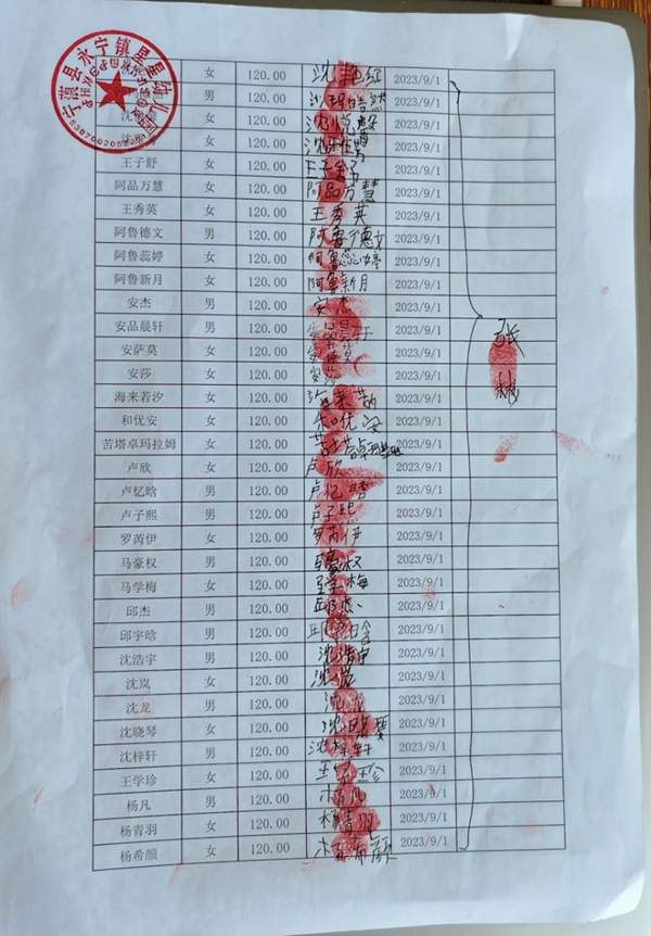 永宁镇新星小学,2023-2024年上学期早餐计划第一次发款签收单