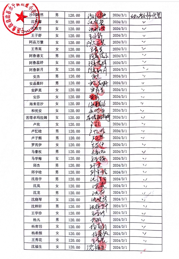 永宁镇新星小学,2023-2024年下学期早餐计划第二次发款签收单