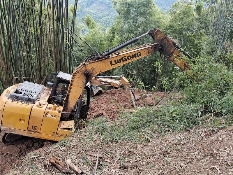 2025年3月下旬大湾公路的进度:这几天天气已经有四五天晴朗,但是挖掘机的发动机坏了正在抓紧维修(拉到成都去修),预计下月压实路面,举行竣工仪式。