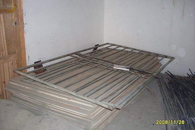 : [做好的校门和准备用来吊顶的板材(9厘板)]