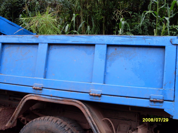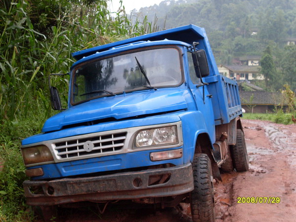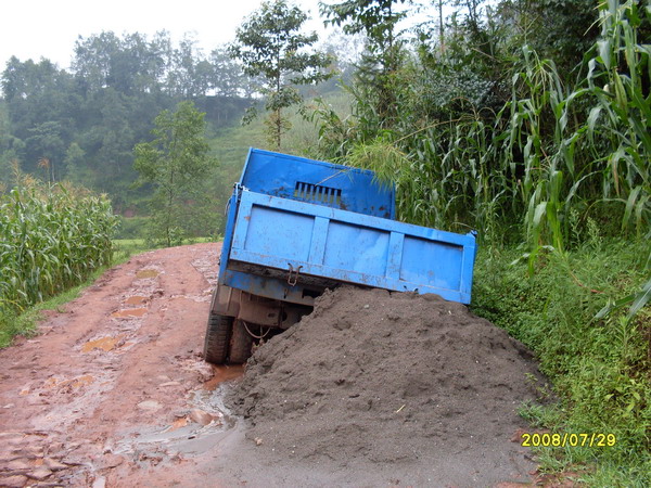 由于车子实在不能走了,只好把宝贵的沙子卸载在路边……