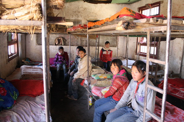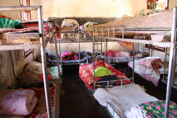 现在学生们住的宿舍:由于没有足够的地方,这里的宿舍是男女同室的,一般是2个人挤在一张床上,当地一个家庭一般都生2-3个小孩,如果都在这里读书,那就挤在一张床上了,老大照顾小的,也有亲戚小孩住在一起的。