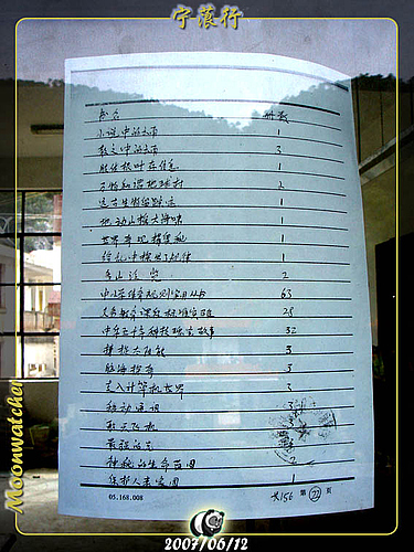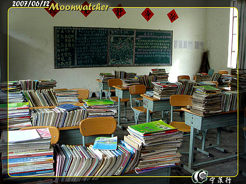 看得出政府和民间对学校的投入也不少,该有的仿佛都有了。可什么该有,在农村却要具体问题具体分析。比如一进校门,一部IC卡电话机便印入我的眼帘,我说你们这儿还有公用电话呀,把号码告诉我,资助人好直接跟学生通话。卢老师笑着让我仔细看,原来电话机只是个摆设,没电线!同样的情况在实验室里也存在:添置了一些实验设备,却没水。好在学校里还有一间图书室,沿墙根儿堆放了一圈图书。卢老师介绍说这是上海一位没留姓名的高中生捐助了五千元购买的。老师们把图书目录贴在窗玻璃上,学生想看哪本书,就跟老师说,老师进去取——很简陋的图书室,很原始的借阅制度,却是全校学生唯一的精神绿洲。这位不知名的同学,你现在也该上大学了吧,如果有一天,有机会亲自来看看,当年的捐助派上用场,你也会欣慰。