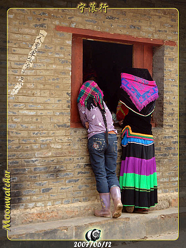 我们这边,对方索要的则是教育局的介绍信。浦老师说,早知道就去开一张了,不过我们真的是去拉伯乡,望月,你去车上把信天发的走访计划拿给他们看。也许浦老师态度端正的说明工作奏了效,也许当地人就买当地人的帐,总之,等我把走访计划找出来,工作人员挥挥手说,不用了。那一边,北京来的老人可没这么走运,他身边缺少一位浦老师这样的当地人同伴作铁证,不得已又花了八十大元买门票,不过总算附赠一个减免的可能:“下次,你把那些光碟都带着当证明!”也是,谁老没事,一年两趟地往泸沽湖跑。工作人员还知道运用“反证法”甄别真假游客,高,实在是高!