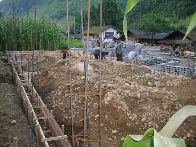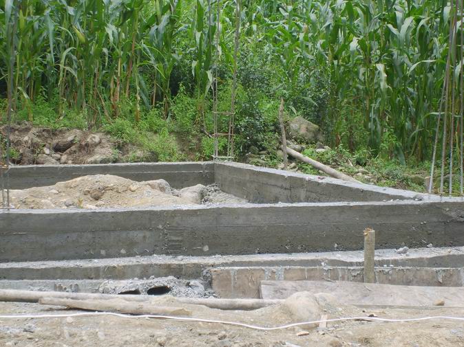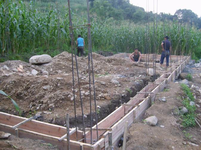 基础做好的时候,那时候天气还没有到下大雨,属于雨季初期..