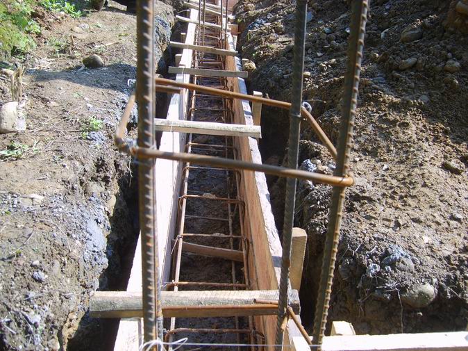 做基础,钢筋混凝土地圈梁,竖钢筋构造柱.