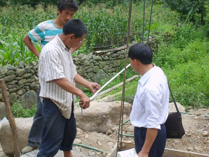 周老师,和曹师傅一起去土坝查看小学修建情况.