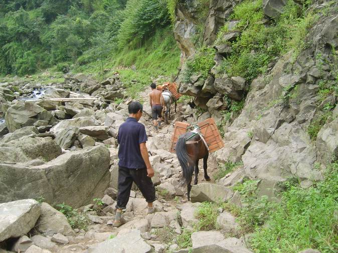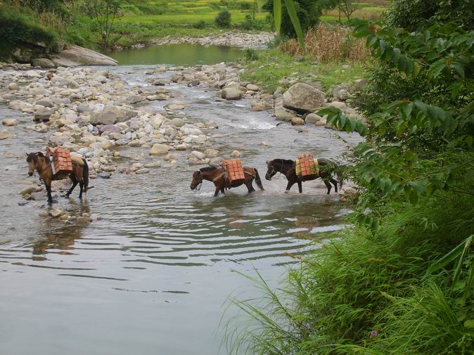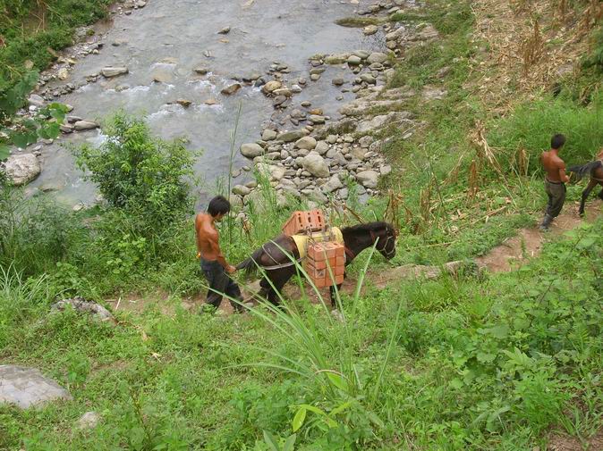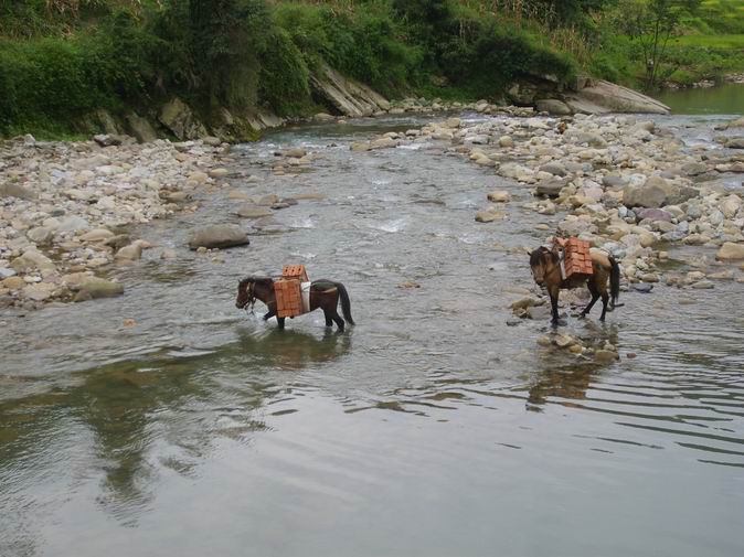 过河,就是这条河,平时不下雨的时候就有水,一旦下雨,就涨水,无法通过了。