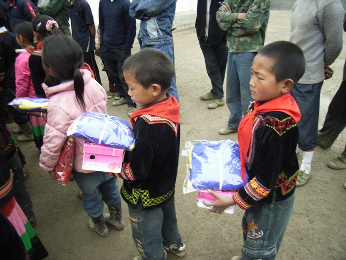 : [校服已经买回来了,在分发校服]