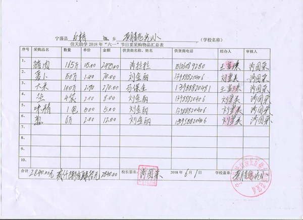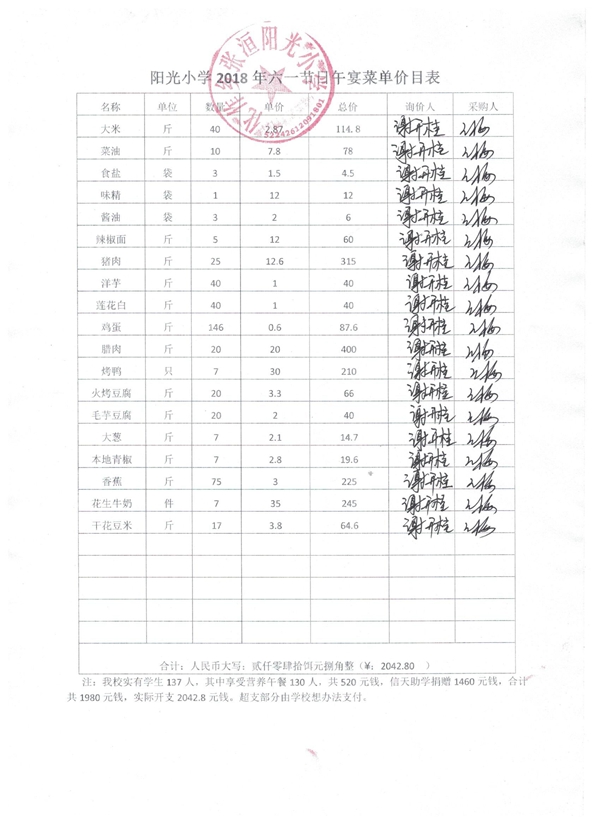 宁蒗县2018六一节日宴采购物品汇总表(红桥乡黄腊老完小).jpg