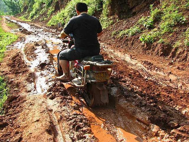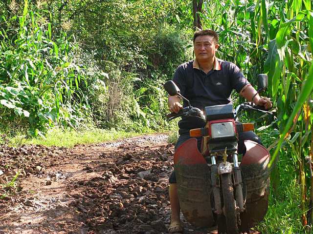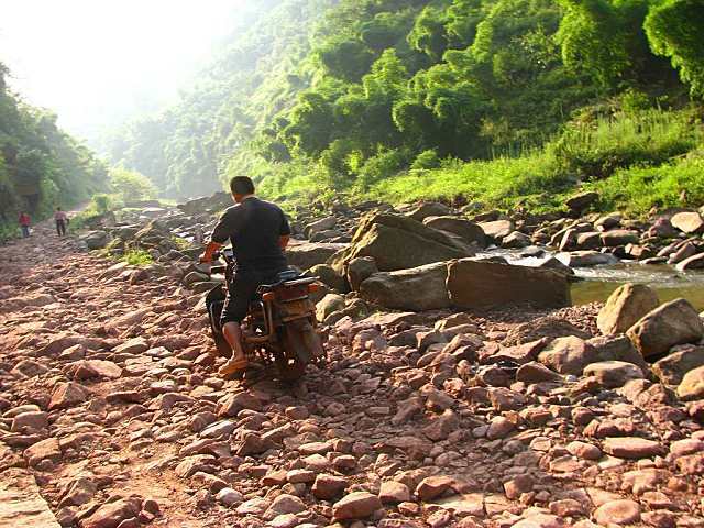 到这个村校,首先要从县城到建设乡,跨过吊桥,再走十多公里的泥泞山路……