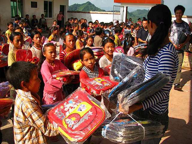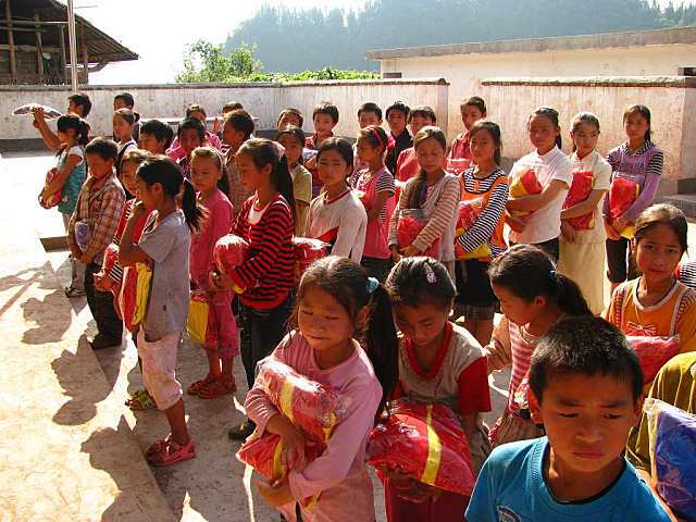 金秋八月,助学志愿者为这个村校的孩子们筹集到一笔善款,为这里的孩子们每人做了一套校服、鞋子和书包等。并直接发给了孩子们。