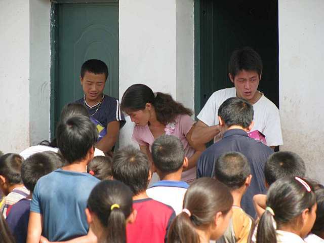 虽然是在假期,得到民间助学组织要来发校服的消息,孩子们早就等在学校了……