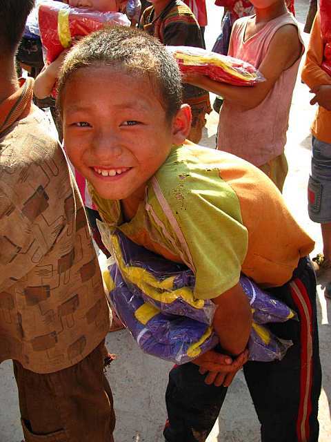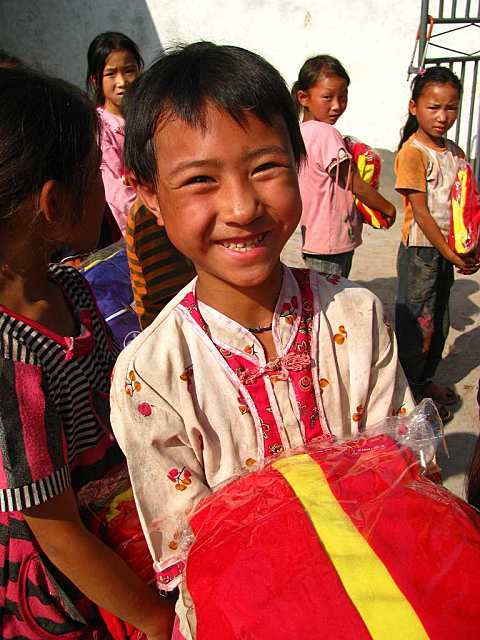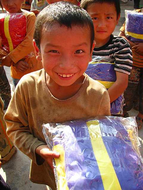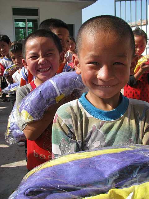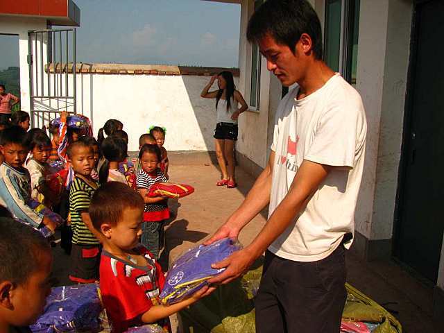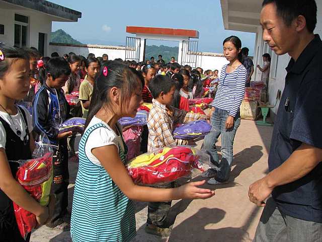 晏家林小学分发校服: