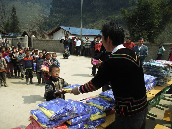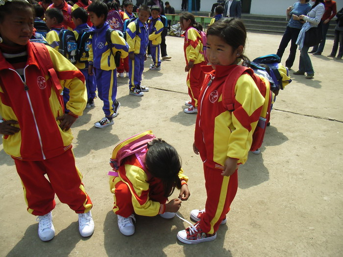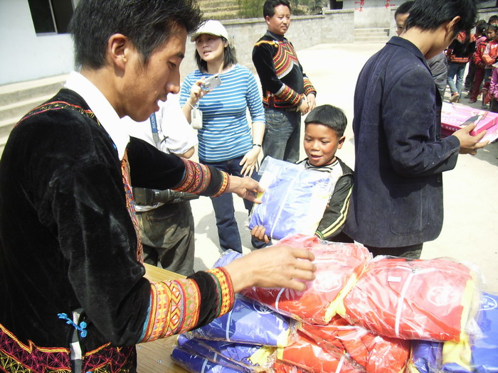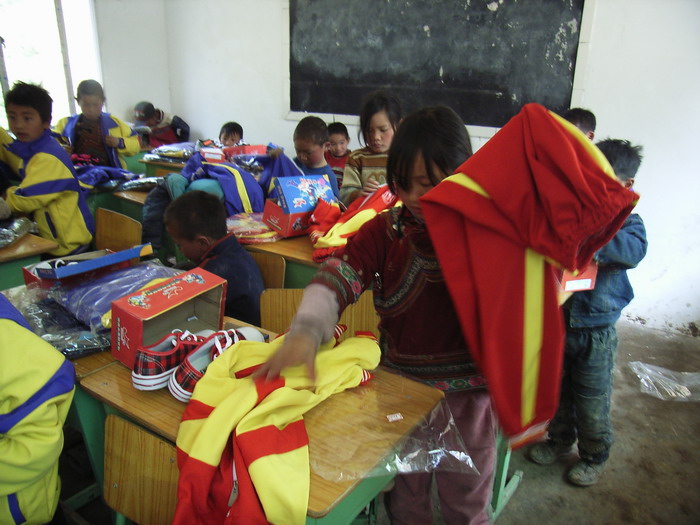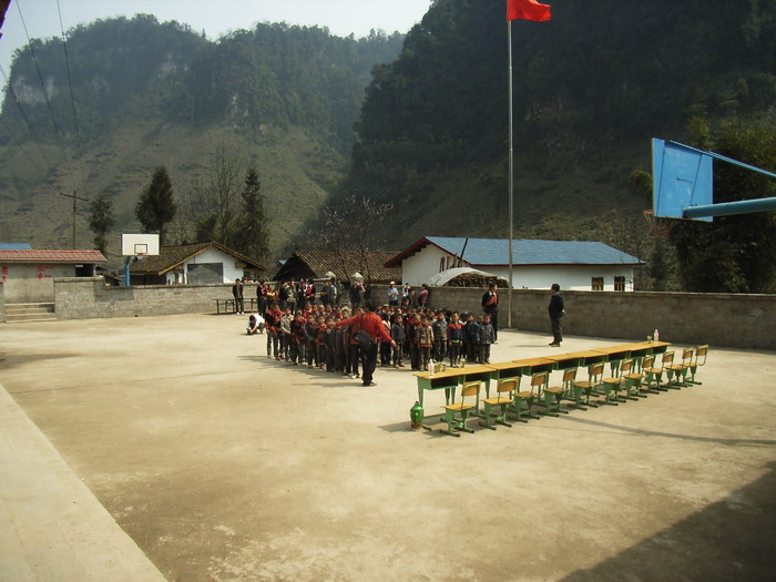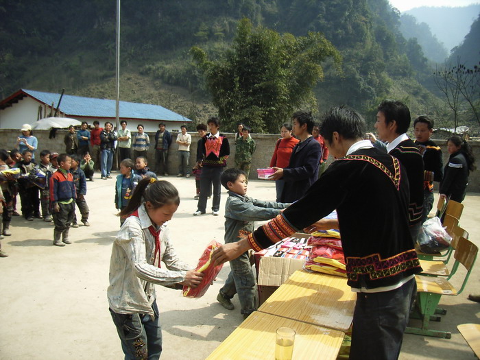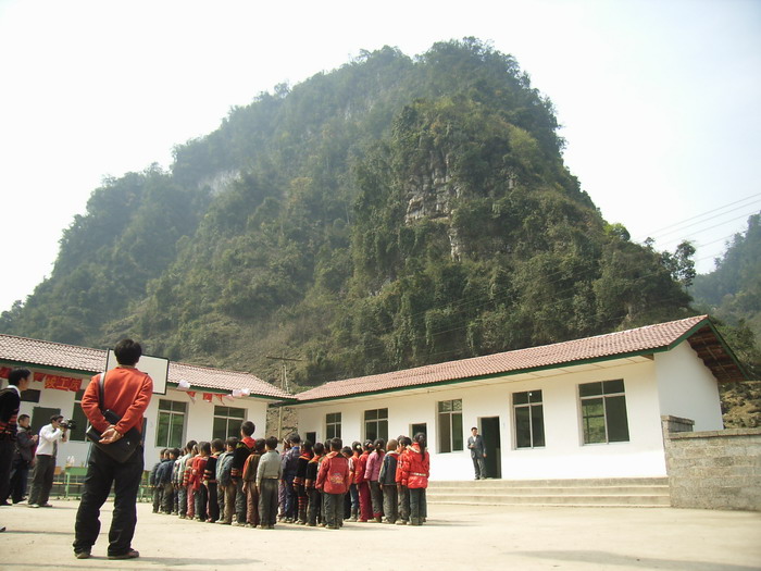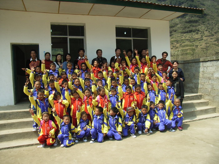 3月17日,春光明媚。马边彝族自治县袁家溪乡刚建成的土坝小学校新校园里举行了一个简朴而热烈的竣工验收仪式,全校59名彝族师生热烈欢迎来自美国、日本的海外华人中坛网友捐资助学代表(两位女士不愿意透露姓名),大家怀着喜悦的心情共庆崭新漂亮的新校舍落成。
