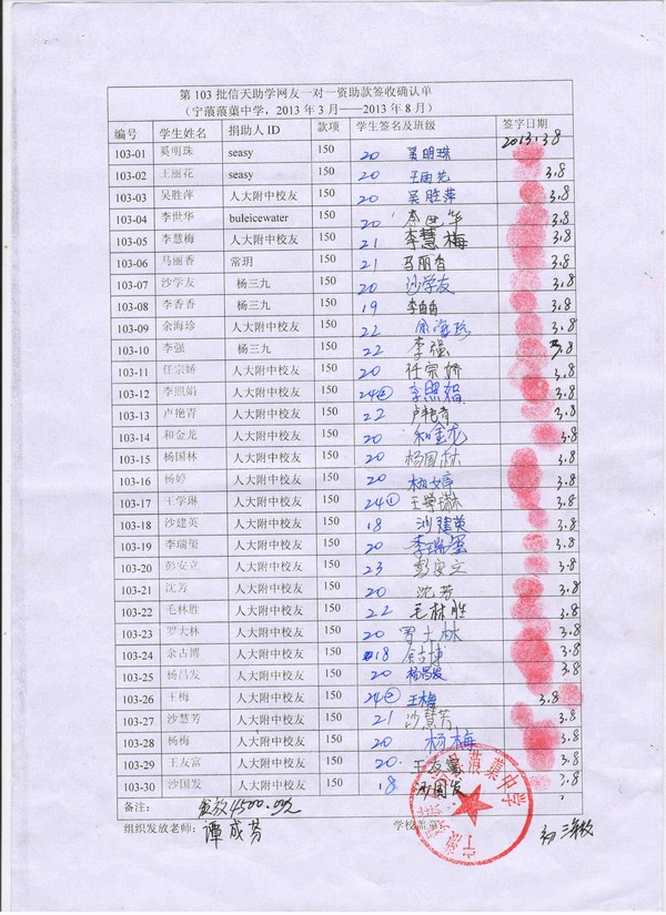 » 第103批受助生名单(蒗渠初一30名,人大附中校友认23名,over