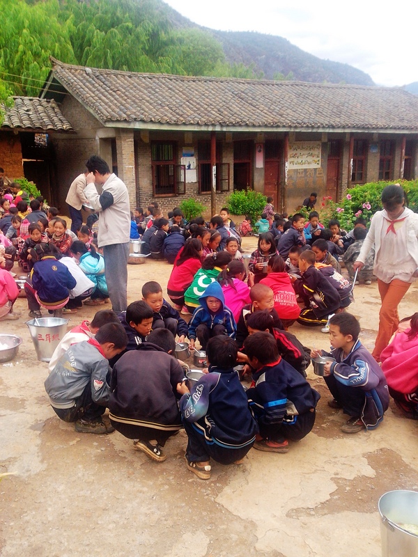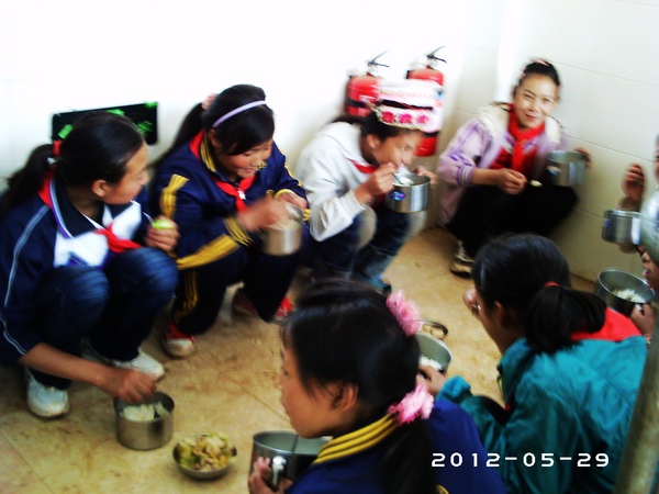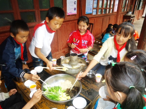 这个学校做菜的条件受限制,所以就给学生开的猪肉火锅,大块猪肉涮着吃。
