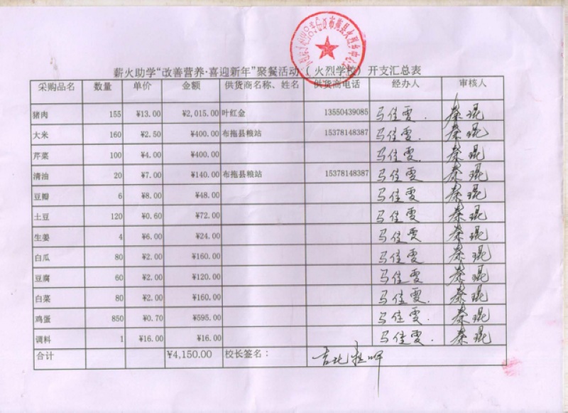 故:元旦聚餐表格以“薪火助学”为标头,希望各位网友理解。