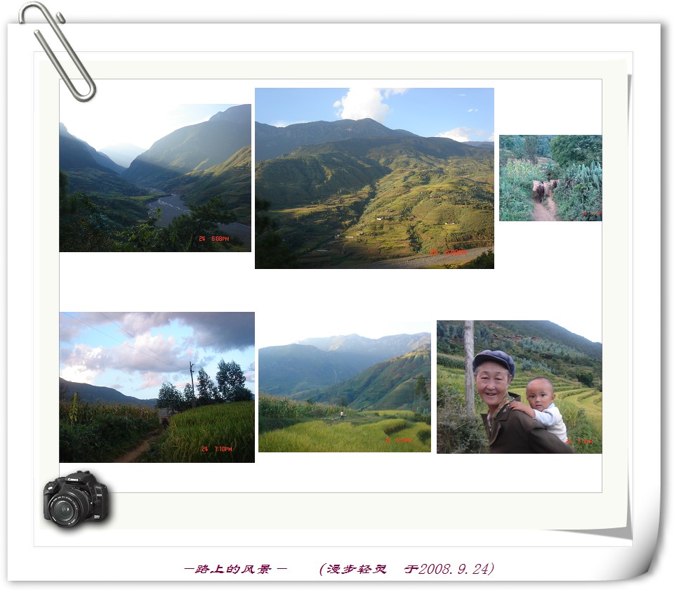 08年9月,我第三次踏上熟悉又陌生的丽江土地。这一次的到来既没有在古城柔软的阳光下消磨,也没有在周边各大著名的景点逗留。与前两次不同的是,此行是纯粹的乡村行。不为更养眼的美景,而是去丽江的乡野中去放松在城市繁忙工作压力下禁锢的身心,也去看看与资助有关的乡村、学校、老师和孩子们,去体会一下大山深处的人和土地,让以往在电话里、图片里的种种印象通过这次的真实行走得以真实的印证。带着这样一种非旅游目的的行走,也许会让脚步和心都更自然。助学是由头,放松是根本。