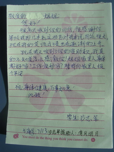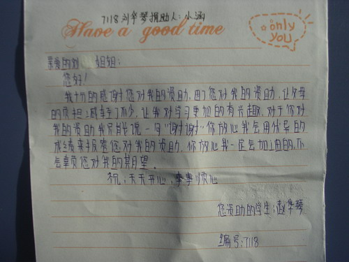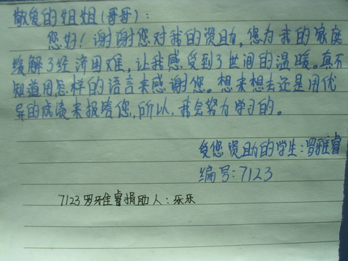 标题: 第71批红桥中学受助学生留言