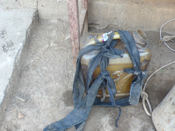 村民们一直背水过日子,第一口井干涸后,现在跑到2公里多的第二口井背水,所谓的井其实就是一个水坑,由于旱情严重,第二口井出水率低,白天出的水不够村民用,村民们就晚上排队背水,这个村子,我们计划采用临时救急方案,就是给每户补助一部分款,使他们能雇拖拉机跑更远的地方取水,这个方案具有临时性,见效快,能救急。